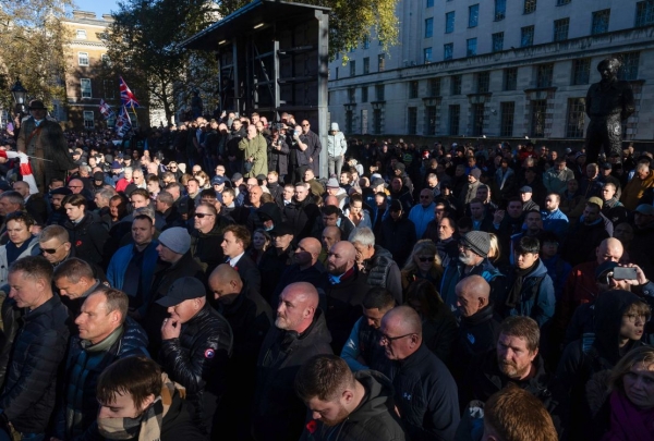 Far-right organizer Tommy Robinson led a small but noisy demonstration to try and reach the Cenotaph, a symbolic landmark which is located in Whitehall, the London district where the prime minister and government departments reside.